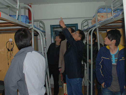 会后,计算机学院的全体领导和辅导员进入学生宿舍检查卫生,并现场指导学生进行再次卫生大扫除。