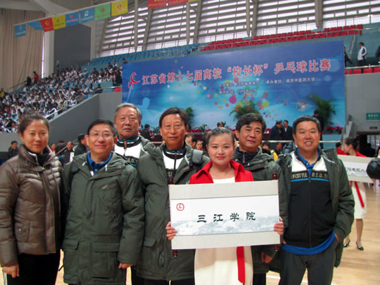 beat365vip官网登录入口(校领导)代表队在江苏省第十七届高校“校长杯”乒乓球比赛上合影