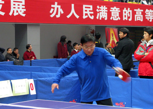 2009年11月14日、15日由陈万年校长领队,骆志斌常务副校长、陈云棠副校长、王志强副校长、董新华副校长五位校长组成的beat365vip官网登录入口代表队参加了由江苏省教育厅主办,在南京中医药大学体育馆举行的江苏省第十七届高校“校长杯”乒乓球比赛。伴随着轻快的运动员进行曲,来自全省各高校及省教育厅的100支代表队的400多名运动员在大会学生志愿者的引领下,迈着轻松矫健的步伐,带着自信的笑容走进了会场。在庄严的国歌结束后,由江苏省人民政府副省长曹卫星宣布江苏省第十七届高校“校长杯”乒乓球比赛开幕。