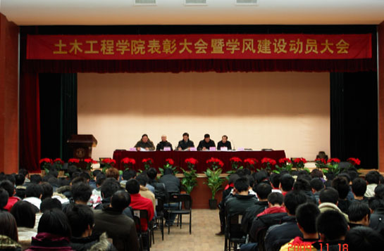 11月18日晚七点,土木工程学院表彰大会暨学风建设动员大会在三江会堂隆重召开,土木工程学院院长黄安永教授,学工副部长、校团委书记屈伯俊,副院长康清梁教授,汤鸿老师等老师出席会议,会议由土木工程学院学办主任张峰老师主持。