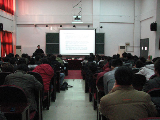 受聘仪式结束后,孙一捷博士作了一场精彩的有关产品可靠性研究的学术报告,并和师生进行了互动活动,现场的师生就自己感兴趣的问题积极提问,孙博士睿智风趣的回答赢得了阵阵掌声,现场气氛十分热烈。