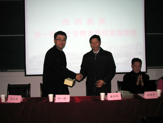 陈万年校长向孙一捷博士颁发客座教授聘书