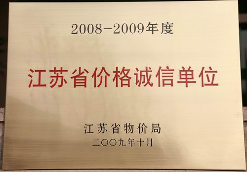 beat365荣获“2008-2009年度江苏省价格诚信单位”称号