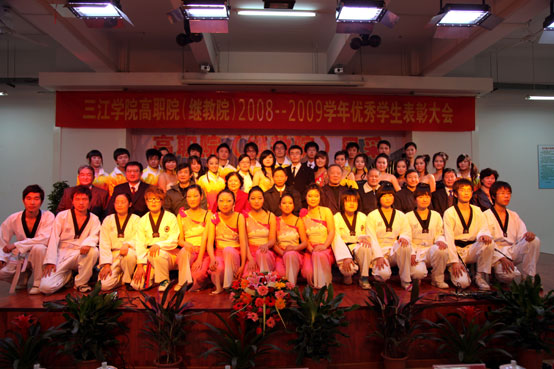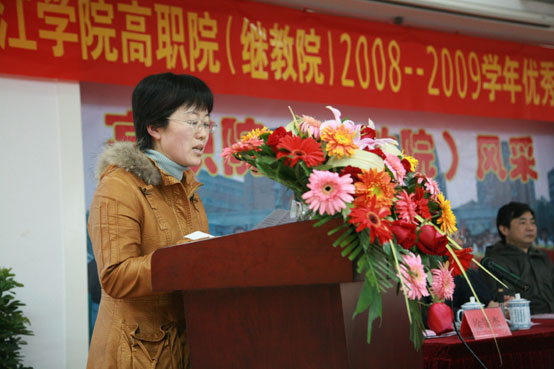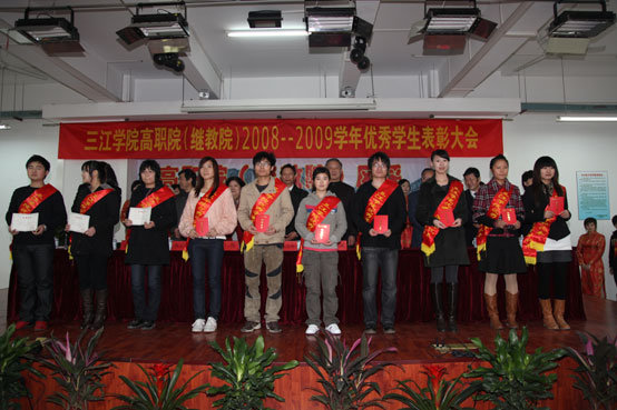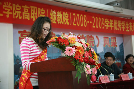 11月26日下午,beat365vip官网登录入口东校区校园,拱门竖立,彩旗飘扬,处处洋溢着欢快祥和的气氛,高职院(继教院)迎来了一年一度的优秀学生表彰大会。出席我院2008-2009学年优秀学生表彰大会的有beat365vip官网登录入口理事长、校长、党委书记陈万年,常务副校长骆志斌,副校长叶俊、王芝庆、陈云棠、王志强、董新华、笪佐领,校长助理、高职院和继教院院长郭彬以及高职院(继教院)的师生代表。大会由高职院(继教院)徐肇杰副院长主持,表彰了我院2008-2009学年1名国家励志奖学金获得者和165名三好学生,321名奖学金获得者,207名优秀学生干部,文娱、体育、卫生积极分子,以及在校第十六届田径运动会上取得优异成绩的运动员。