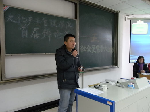 在 “文化产业管理学院辩论赛”中,文管院大学生跨年级跨班级自由组合,遴选出八支队伍,相互扶持、相互激励,热情参与,注重仪表礼节,文明辩论,气氛热烈,展示了他们的团队协作能力,锻炼了心理素质,提高了学生们分析问题的能力。