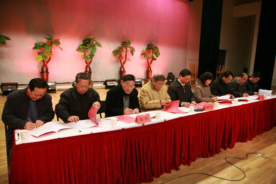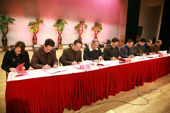 颁奖仪式之后,举行了二级院(系)目标管理责任书签字仪式,各二级院(系)的负责人上台与陈万年校长共同签定了二级院(系)目标管理责任书。