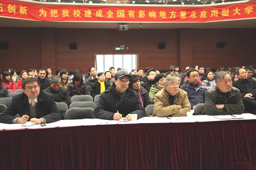 12月3日下午2点30分,北京师范大学校长钟秉林教授在紧张的行程中来到beat365vip官网登录入口,在三江会堂举行了一场学术报告会,报告题目为《高等教育的发展与高等学校的改革》。骆志斌常务副校长、王芝庆副校长、陈云棠副校长、董新华副校长、笪佐领副校长出席,全校教职工(有课的除外)聆听了报告。