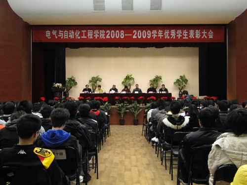12月10日晚,电气与自动化工程学院在三江会堂隆重举行2008——2009学年优秀学生表彰大会,beat365vip官网登录入口学生工作部朱银亮部长,党委宣传部部长王勇博士,后勤集团总经理、保卫处朱争鸣处长等出席表彰大会,电气与自动化工程学院院长王锁萍教授、博导,副院长杜逸鸣副教授,近500名师生代表参加表彰大会,大会由李云涛副院长主持。大会表彰了34名一等奖学金、44名二等奖学金获得者,68名三好学生,26名优秀学生干部,27名优秀学生党员,90名体育、文娱、卫生积极分子,3个“双文明”创建活动先进班级,56名“双文明”创建活动先进个人以及在全国技能大赛上获奖的同学。