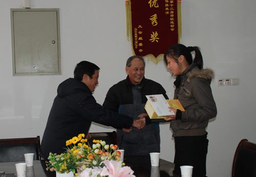 王校长和朱部长给韩菊芬同学颁发纪念品 摄影/魏圆圆 顾问