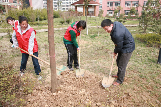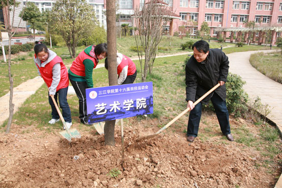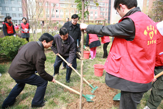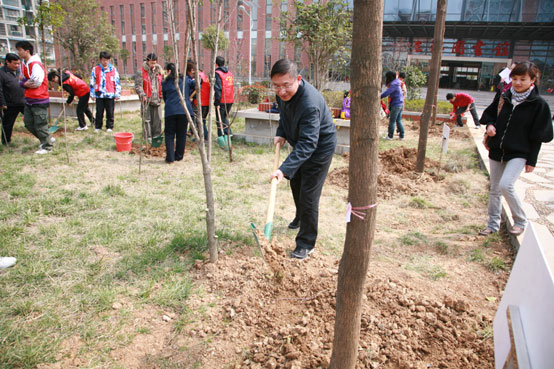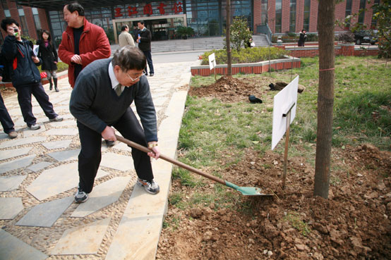 2010年3月18日10:30(星期四)beat365vip官网登录入口各院系负责人、教师代表、学生志愿者在校团委、校党委宣传部、风景园林学院组织下,在校园内共同举行了以“固碳减排 低碳生活”为主题的植树活动。