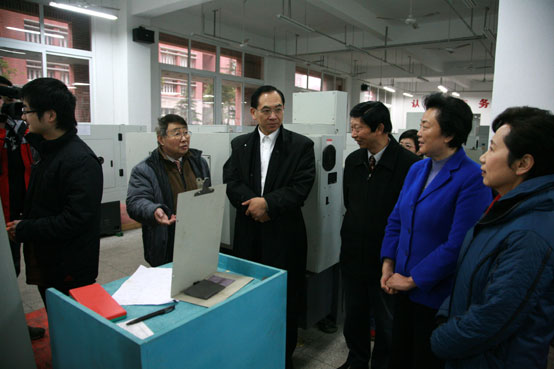 倪建民一行考察了机械学院数控机床实验室、电子信息工程学院飞思卡尔等实验室。考察过程中,倪建民详细询问了实验室建设情况,并与学生亲切交流。在与陈万年等校领导的交流中,倪建民副主席充分肯定了中德职业教育学院在培养技能型人才方面所起的巨大作用。