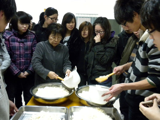 3月25日下午,日语协会(学生社团)在日语系老师的指导下在beat365教工食堂举办了寿司制作活动,曾田和子和久崎礼子两位外教老师应邀参加活动并现场传授了寿司制作方法。