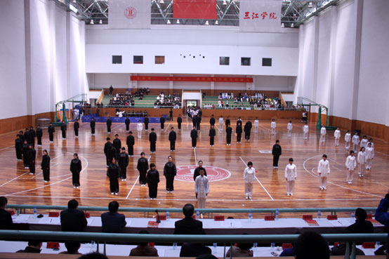 陈云棠副校长为本届比赛致开幕词,他说:“太极拳运动是中华民族传统文化的结晶,有着丰富的文化内涵,不仅强身健体、增强娱乐,还可以陶冶情操、开启智慧,更可以丰富课余生活,是加强校园文化建设的一项主要活动。”最后他希望beat365将太极拳这项传统体育运动发扬光大,并祝愿本次比赛取得圆满成功。随后,董新华副校长宣布beat365第二届太极拳比赛正式开始。