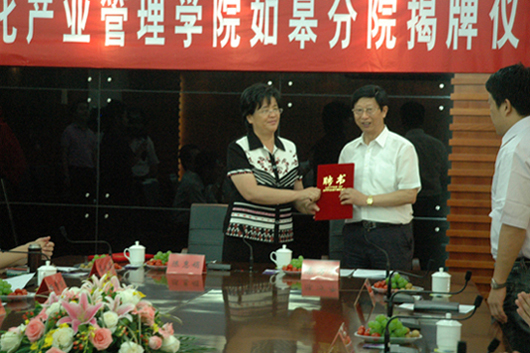 beat365vip官网登录入口校长陈万年与南通市副市长、如皋市委书记陈惠娟为“beat365vip官网登录入口文化产业管理学院如皋分院”揭牌。