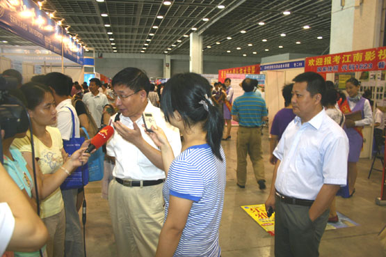 吸引来众多考生和家长的同时,咨询会也吸引了在宁主要媒体的关注。董新华副校长在咨询会现场接受了南京电视台等多家媒体的联合采访。