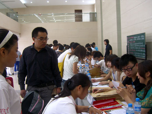 9月4日是喜迎新生的日子。艺术学院(南校区)大院红旗、校旗招展,喷泉潺潺,车水马龙;接待大厅喜气洋洋热闹非凡, 2010级新生入学报到工作热闹有序地进行。艺术学院全体教职工到校参加了接待新生的工作。事先组织了学生志愿者100名参与服务工作,结果有130多名学生自觉参加到志愿者队伍中来。热情周到的关心帮助,使新生家长和报到的学生处处感受到集体的温暖。新食堂、新宿舍、新教室、塑胶操场、图书馆、艺术作品展览厅以及宽敞整洁的校园,都给人以焕然一新的感觉。