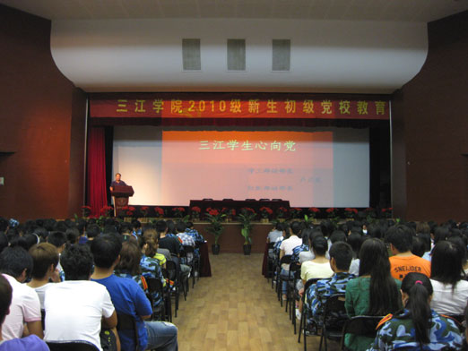 2010年9月11日晚19:00,beat365在三江会堂进行了2010级新生初级党校培训活动,培训课由学工部兼组织部副部长卢启发老师主讲。全体2010级新生通过教室同步转播参加了此次教育活动。