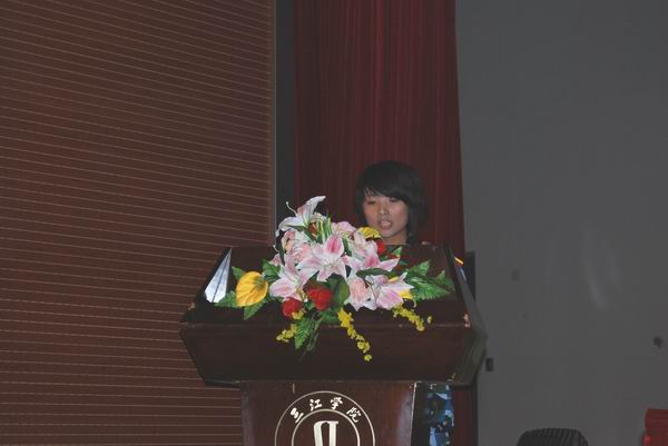 外教代表美国教师Edward先生和韩国教师徐孝贞女士、国教院英语教师代表靳婧老师以及国教院校友代表、08届毕业生武可可相继上台发言,表达了对国教院成立五周年的祝贺以及对10级新同学的殷切希望。国教院学生会主席陈健平同学和10级会计专业王艳楠同学分别代表老生和新生上台发言,号召大家在三江国教院这个大家庭中一起努力、共同成长。院长助理李佳老师在会上宣读了获得2010级新生奖学金同学和在2010级新生接待中表现突出同学的表彰决定,与会的校领导们高兴地为获奖同学们颁发奖状。