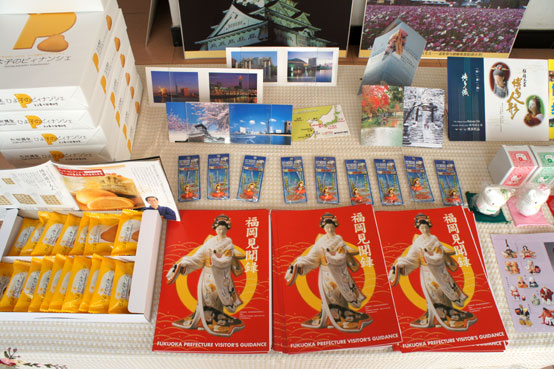 展览现场,39张关于江苏的友好省份——福冈县的展板依次排开,精美的图案吸引了不少学生驻足观赏。展台上可爱的博多人形、成套的风景明信片和美味的九州限定点心ひよこのピィナシェ,都让同学们有了近距离接触日本文化和风土人情的机会。展览开始当天,不少到场的同学还获赠了限量版的日本产手机饰物。