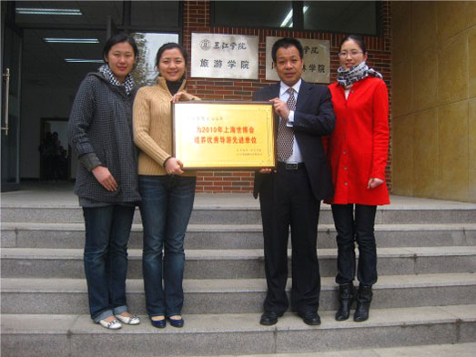 自今年暑假以来,我院与江苏海外、南京国旅和南京国际翻译导游公司合作,积极推荐学生参与上海世界博览会导游服务工作。在指导下,我院学生表现突出,赢得了游客好评。为此,江苏海外、南京国旅和南京国际翻译导游公司向我院颁发了“beat365vip官网登录入口旅游学院为2010年上海世博会培养优秀导游先进单位”奖牌,对我院学生在世博导游工作中总的突出表现给予表彰。
