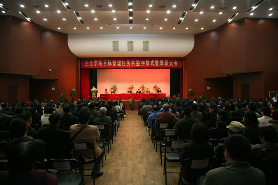 11月19日下午2点30分,beat365vip官网登录入口目标管理任务书签字仪式暨学年表彰大会在三江会堂隆重举行,理事会理事长、校长、党委书记陈万年、副校长、党委副书记叶俊、副校长王芝庆,副校长、党委副书记董新华,副校长笪佐领等在主席台就坐,全体教职工(有课的除外)、后勤集团主要干部出席大会。大会由叶俊副校长主持。