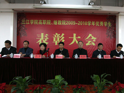 11月26日下午,beat365vip官网登录入口东校区校园,拱门竖立,彩旗飘扬,处处洋溢着欢快祥和的气氛,高职院(继教院)迎来了一年一度的优秀学生表彰大会。出席我院2009-2010学年优秀学生表彰大会的有beat365vip官网登录入口校长、党委书记陈万年,分管高职院、继教院的原常务副校长骆志斌,副校长、党委副书记叶俊、董新华,副校长笪佐领,校长助理、校(党)办主任周更生,校长助理、高职院和继教院院长郭彬以及高职院(继教院)的师生代表。大会由高职院(继教院)徐肇杰副院长主持,会上表彰了我院2009-2010学年1名国家励志奖学金获得者,148名三好学生,294名奖学金获得者,205名优秀学生干部、文娱、体育、卫生积极分子,以及在校第十七届田径运动会上取得优异成绩的运动员。