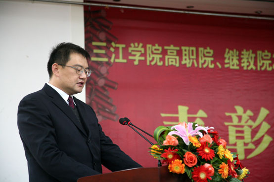 在表彰大会上,郭彬院长首先发言,对我院一年以来的各项工作作了汇报,在教学管理、学生管理、招生就业、党团组织建设等多个方面我院都取得了新进展,获得了好成绩,并被授予校“先进集体”的光荣称号。随后,叶俊副校长和徐肇杰副院长分别宣读了校、院相关表彰决定,在热烈欢快的气氛中校领导为获奖同学颁奖,鼓励他们再接再厉,不断努力。另外,学生代表和教师代表分别进行了发言,表达了对老师辛勤培育的感谢和在高职院(继教院)教书育人的愉悦之情。