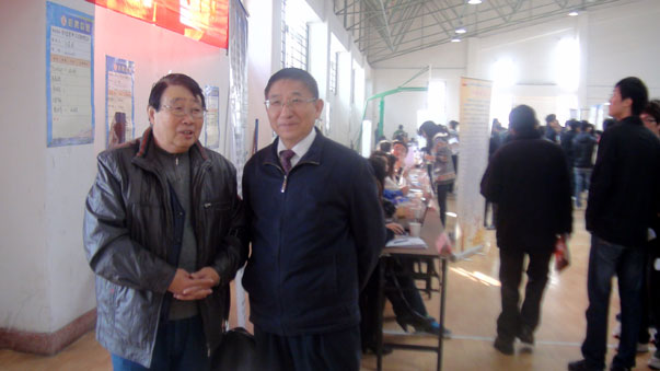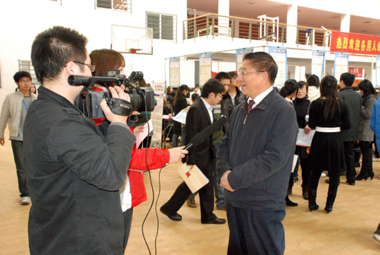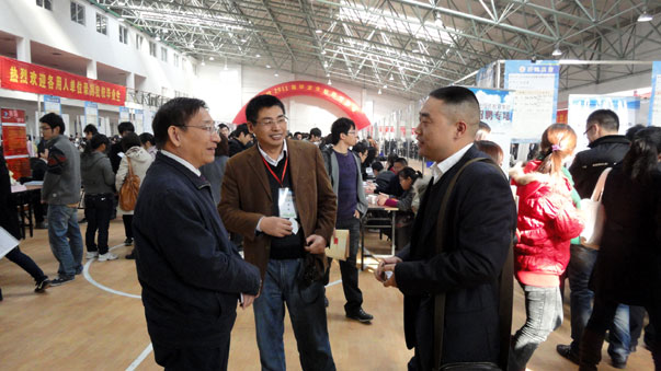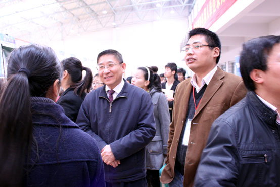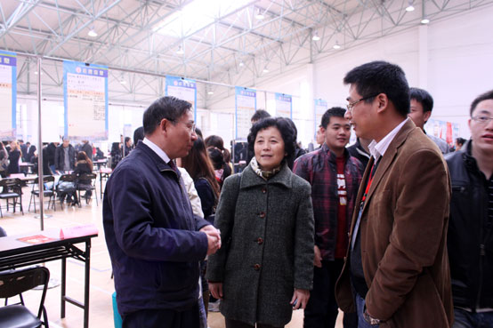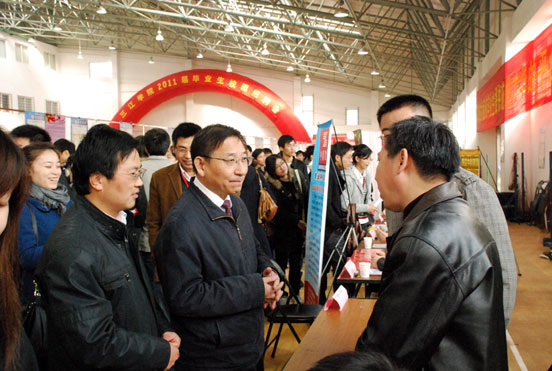 董新华副校长、部分院系领导在招聘会现场指导同学们择业,并与用人单位交流