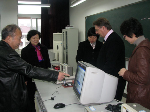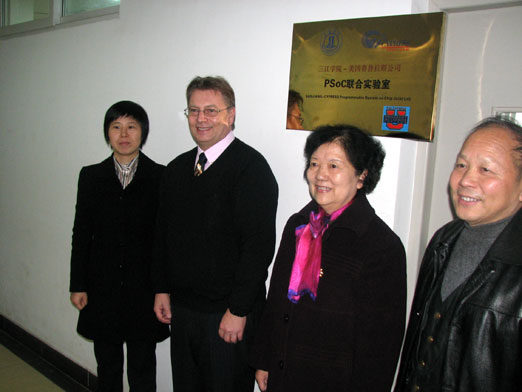 叶俊副校长向客人简单介绍了学校的发展情况,并对客人的到访表示热烈地欢迎。随后,Partrik Kane和叶俊副校长共同为“PSoC联合实验室”进行揭牌。在该实验室负责人的陪同下,大家一起参观了该实验室。最后,双方一起进行了友好座谈,Partrik Kane向我院教师介绍了CYPRESS公司的产品技术等情况,双方还对校企合作进行了深入探讨。