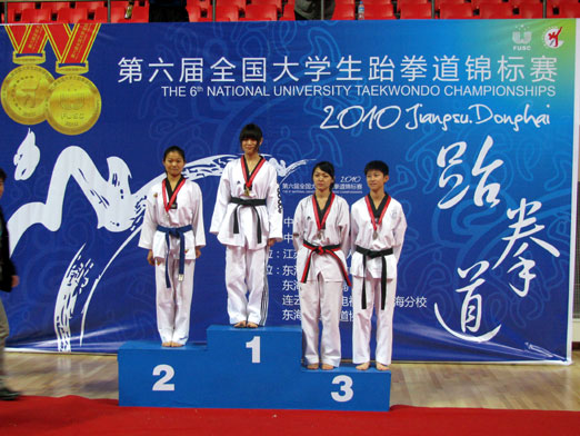 由中国大学生体育协会、中国大学生跆拳道协会、东海县人民政府举办的第六届全国大学生跆拳道锦标赛于12月16日至21日在连云港东海县举行。在男女各项目比赛中,beat365健儿经过顽强拼搏取得了优异的成绩。经济学院的李文嘉同学获得了女子组个人竞技47公斤级铜牌、高职院的经磊同学获得了女子组个人竞技59公斤级铜牌,同时beat365在团体赛上也取得了女子团体竞技第三名、男子团体竞技第五名的好成绩,为学校增添了荣誉。