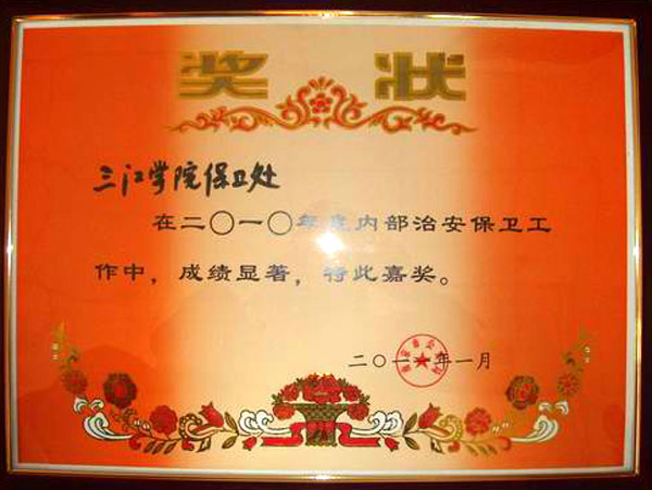 继2010年4月beat365荣获江苏省首批“平安校园”荣誉称号后,在学校党委的正确领导和全校各部门的大力配合下,保卫处全体工作人员齐心协力,认真巩固“创建”成果。根据《企业事业单位内部治安保卫条例》和《江苏省公安厅关于机关团体企业事业单位保卫组织和保卫人员表彰奖励暂行规定》,南京市公安局授予beat365vip官网登录入口保卫处2010年度“高校内保工作先进集体”光荣称号。