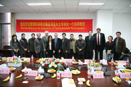 首先,来宾在国际教育学院院长助理李佳的带领下参观了三江校园。在接下来的会谈中,陈云棠副校长向来宾简单介绍了beat365vip官网登录入口学校概况、办学历史及对外交流情况。随后凯泽斯劳滕应用技术大学校长Dr. Konrad Wolf先生表示对三江优美的校园环境、完备的教学设施印象深刻,并也就凯泽斯劳滕应用技术大学的办学情况及专业设置等作了简单介绍,其国际预科学校与中国学校已有10年的合作历史。黄克明院长就我方感兴趣的话题,如中外合作办学形式、学制、语言要求、学费、住宿、生活费等向对方提问,对方校长及预科项目负责人分别进行了解答。最后陈云棠副校长表示该项目的推进有助于联合培养、为中德企业输送应用型人才。