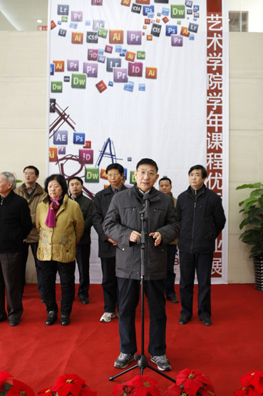 董新华副校长也作了热情洋溢的讲话。他充分肯定了艺术学院一年多来为搬迁南校区、确保安全稳定所做的努力。艺术学院年度课程优秀作业展的举办标志着学院从搬迁稳定阶段,进入到了内涵建设阶段。课程建设是教学改革与建设的基础,课程教学水平的提高是教学质量提高的重要保证,本次展览、交流,使课程教学质量得以比较和验证,达到相互学习和促进的目的。他衷心地祝愿艺术学院这个有创意的教改举措收获硕果。