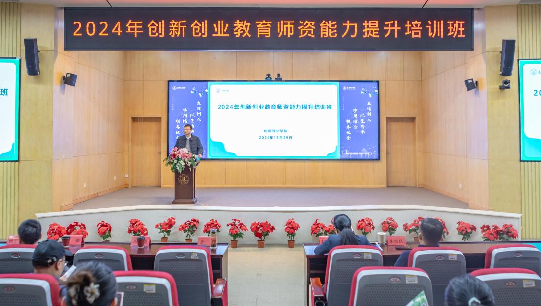 为深入学习习近平总书记给中国国际大学生创新大赛参赛师生代表的回信精神,积极备赛中国国际大学生创新大赛(2025),同时提升创新创业课程的教学水平,加强教师竞赛指导水平和专业能力,我院举办2024年创新创业教育师资能力提升培训班。培训分别邀请了国赛及省赛的评委及专家担任主讲嘉宾,创新创业系列课程教学团队教师、创新创业训练计划项目指导教师各类“双创”赛事指导教师等120余人参加了此次培训培训班由创新创业学院副院长齐鹏主持。