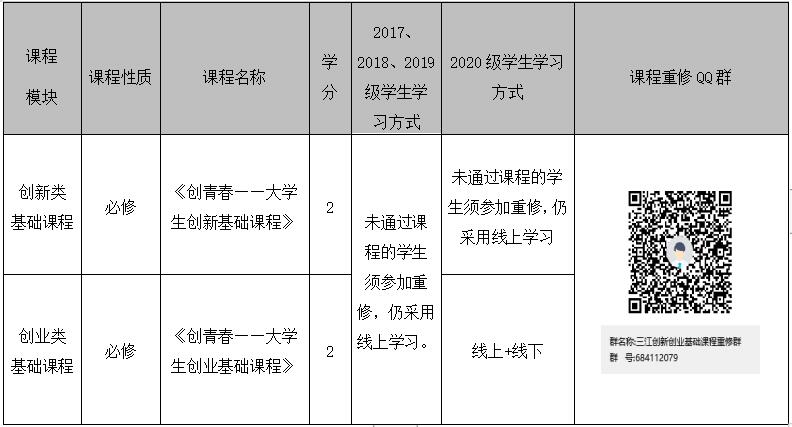 请所有重修学生务必加三江创新创业基础课程重修QQ群(684112079),以后所有的课程信息都将发布在此群中。