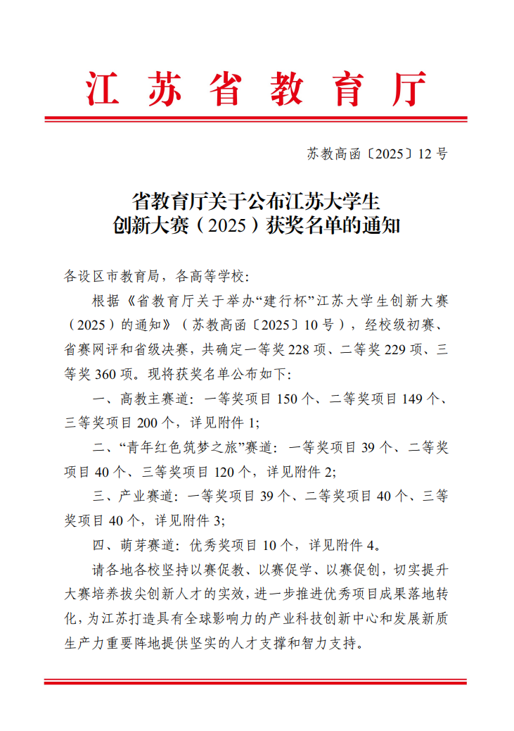 beat365在江苏省大学生创新大赛(2025)中获佳绩