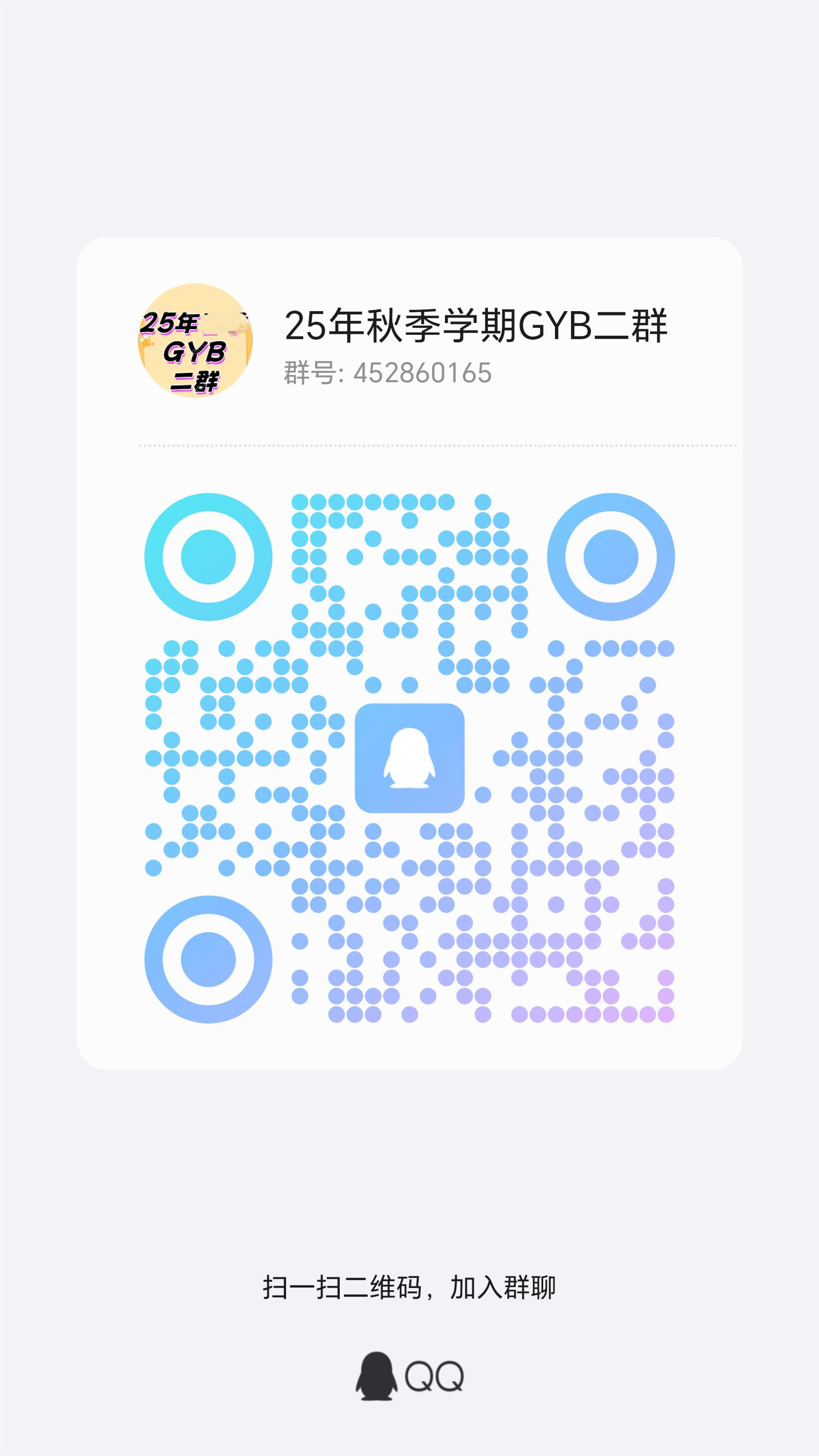 1.报名GYB加入QQ群,群1(683438431)、群2(452860165)