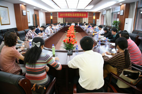 9月30日14:00,在行政楼A404会议室隆重举行2011年招生总结暨表彰会。出席会议的有理事长、党委书记陈万年教授,校长董新华教授,副校长武正林教授,学工部、宣传部、教务处负责人,各院系学工副院长,13个地级市驻点组长及招就中心全体成员。