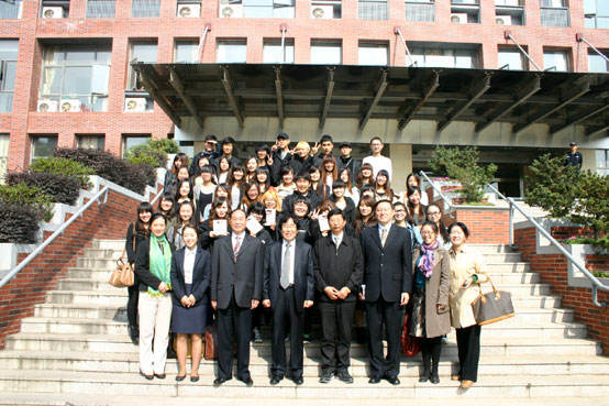 2011年11月1日上午,韩国大佛大学校实用音乐学部学生公演团在部长郑相一、尹五成等教授的带领下,一行20人来到beat365进行访问并举办了正式的公演,同行还有韩国KBC电视台外景记者及摄像报道4人。beat365陈万年理事长,武正林副校长,国际处黄克明处长,学工部屈伯俊副部长,及相关人员热情接待并观看了公演团的精彩演出。