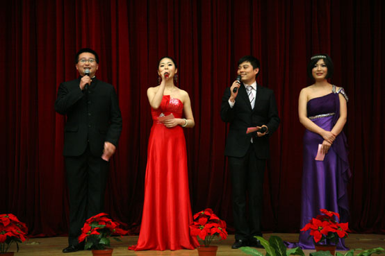 4点,在理事会理事叶俊主持下,“两代会”文艺演出暨教职工新年联欢会隆重开始。