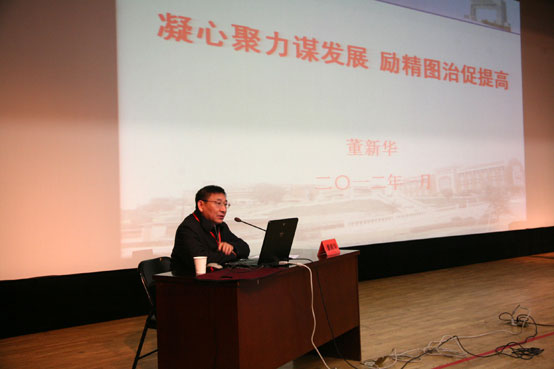董新华校长作题为《凝心聚力谋发展 励精图治促提高》的工作报告
