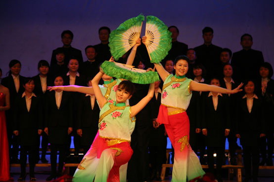 经过理事会理事叶俊同志以及邢小刚、王勇、谢霞、鲁璐、郑增琴等同志的精心筹备,一场热烈、和谐、温馨、精彩的晚会呈现在全体专任教职工面前。节目异彩纷呈,现场掌声、笑声不断。开场歌伴舞《欢乐中国年》以大红的上衣、翠绿的裤子、火红的扇子舞展现出碧水清荷的美妙图画,抒发了三江人全面落实科学发展观,与祖国同呼吸共命运的和谐胜景。大学英语部老师的小合唱《宝贝》、《亲亲我的宝贝》温馨又洋溢着青春气息。舞蹈《咱们工人有力量》表现出三江人团结奋进、开拓创新的精神气概。舞蹈《青花瓷》、小品《离家出走记》等节目都富有创意,备受喜欢。晚会在国际教育学院的演出节目歌伴舞《在希望的田野上》和理事会、校行政、校党委领导、工会委员的合唱校歌声中辉煌落幕。
