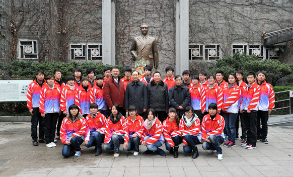 在梅园新村陈列馆浮雕前,南京市梅园中学、南京市第九中学、东南大学土木工程学院、南京工业大学“周恩来班”和宁沪高速公路南京收费站等学校(单位)通过诗歌朗诵的形式来共同缅怀周恩来同志,学习一代伟人周恩来为人民鞠躬尽瘁、死而后已的无私奉献精神,激励大家继承和发扬周恩来的革命精神和崇高品质。我院李娜和李益群同学声情并茂地朗诵了诗歌《永远的马蹄莲》,更进一步体现了周恩来总理的丰功伟绩和人们对他的思念。