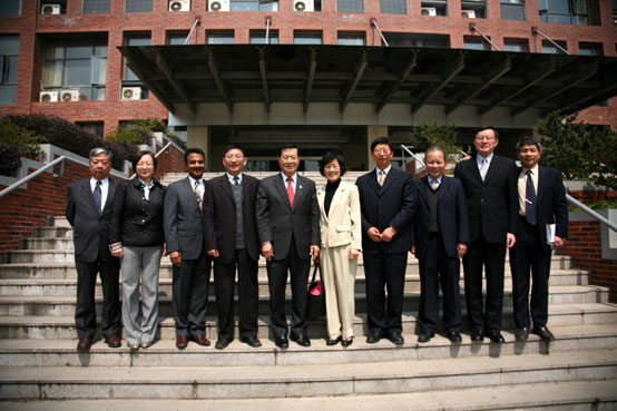 宾主双方在beat365vip官网登录入口行政楼前合影