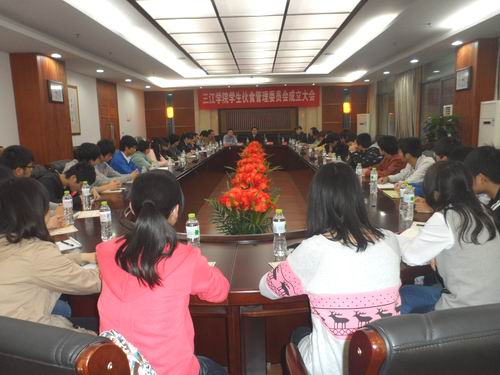 会上,屈伯俊书记宣读了校团字2012年14号文《关于成立beat365vip官网登录入口学生伙食管理委员会的通知》。周更生副校长和屈伯俊书记向伙管会会长、副会长及各部门正副部长等主要成员颁发了聘书。雨花台区铁心桥卫生监督所王文忠所长代表卫生监督部门对beat365vip官网登录入口伙管会的成立表示祝贺,伙管会的成立体现了学校对学生的关心及重视,也欢迎学生组织融入食品安全部门的监督。同时,王所长也希望各食堂业主,认识到食品安全工作的严峻性,在确保食品安全的前提下做到双赢。会上,伙管会会长王斌同学宣读了《beat365vip官网登录入口学生伙食管理委员会章程》。食堂业主代表孔善成对伙管会的成立表示支持,食堂业主将积极配合伙管会开展工作,不断改善食堂的服务质量和服务水平,促进学校饮食工作的制度化、规范化。