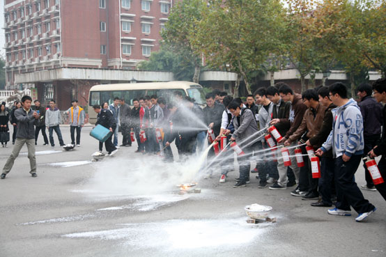 11月8 日beat365保卫处在三江会堂举行了“强化安全意识,提高避险能力”的消防安全月启动仪式。武正林副校长、周更生副校长、消防大队李文杰副大队长、铁心桥中队程小丹队长、校学工部仇存进部长、校保卫处屈伯俊处长出席了启动仪式,各院系分管学生工作的领导、保卫处各科室、消防大队的消防士官、学生各年级的班长、各楼层长近1000人参加了会议。会上,武正林副校长做了生动的冬季校园消防安全教育动员。消防士官为大家讲解了冬季及日常生活中火灾的预防和扑救、以及逃生常识。会后校义务消防队员进行了灭火演练。
