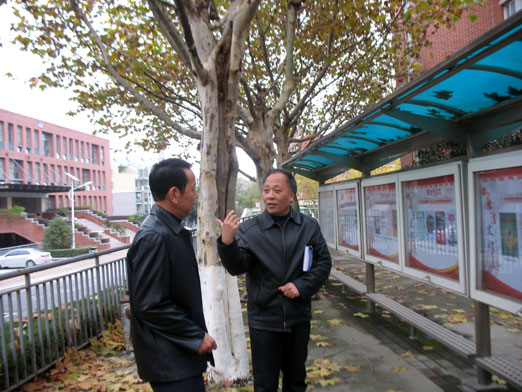 党委委员、纪委副书记、组织部长卢启发向许谦主任(左)介绍工作情况