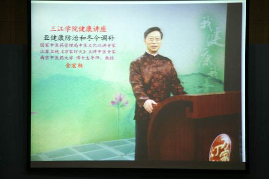 南京中医药大学博士生导师金宏柱教授作题为“亚健康防治和冬令调补”的讲座