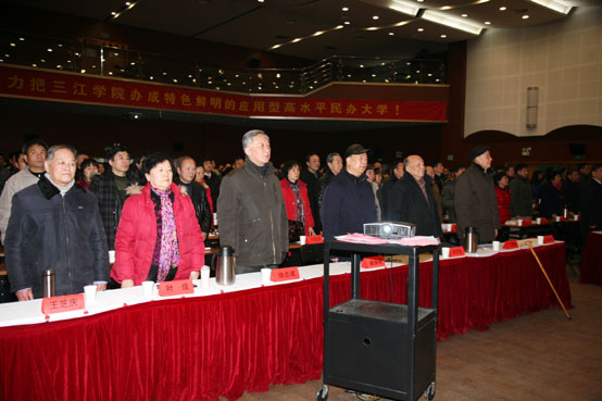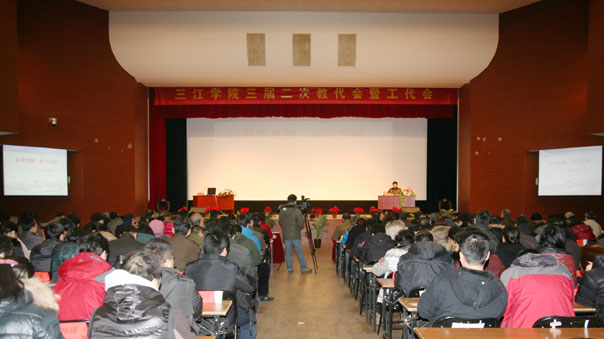 2013年1月20日上午8点30分,beat365第三届二次教代会暨工代会会议在三江会堂隆重召开,理事会理事长、党委书记陈万年,校长、理事会副理事长、党委副书记董新华,副校长陈云棠,副校长顾江,副校长、党委副书记武正林,副校长周更生,理事会理事,各部门、各院(系)负责人及全体教职工参加了大会。