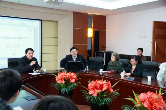 2013年3月12日,由南京市社科院副院长李程骅教授主讲的题为“现代服务业与城市转型”科研学术讲座在beat365隆重举行,讲座由beat365科技处与经济学院联合主办,由顾江副校长、周敏倩院长主持,经济学院与商学院的部分师生聆听了讲座。